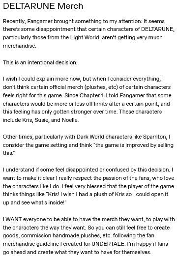 >>556060573I mean they sell plushes of both normal and secret chapter bosses from Deltarune, those are pretty spoiler-y as well
