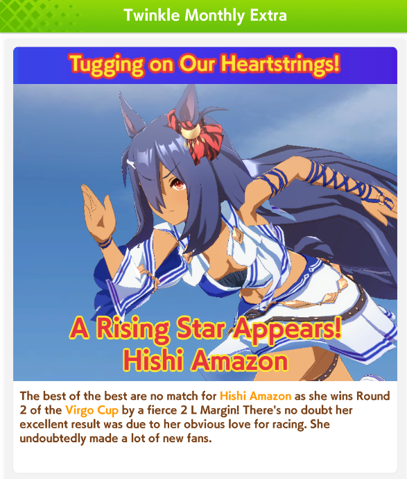 Previous: >>555991395>Global Game NewsLink your account to Cygames iDCurrent Scenario: Aoharu Hai aka "Unity Cup"Current Rate Up Trainee: New Year T.M. Opera O (3*), New Year Haru Urara (3*)Current Rate Up Support Cards: SSR Admire Vega (Power), SSR Matikanefukukitaru (Speed)Current CM: Capricorn Cup - Chukyo Turf 1200mMain Story Chapter 5 is out01/27 - New Beginnings Part 101/29 - NY Opera & Haru 3*+Fuku SSR+Ayabe SSR02/05 - 02/12 Racing CarnivalMid February - Capricorn Cup - Chukyo Turf 1200mhttps://umamusume.com/news/100040/https://pages.snep.pw/uma/anni-skill-changes/>JP Game NewsCurrent Rate Up: Valentine Taiki Shuttle (3*), Valentine Sounds of Earth (3*), SSR Matikanefukukitaru, SSR Neo UniverseNew Scenario "Yukoma Hot Spring" releasedTimeline: https://uma.moe/timelineCygames Webstore: https://webstore.cygames.com/en/umamusume_en/>Thread Clubshttps://rentry.co/umaglobalclublistYou must be E3 (20k points) to join a circle. Apply with /uma/ or /vg/ in your profile or post ID in the thread.>All Guides & Resourceshttps://rentry.org/uma26Game databasehttps://gametora.com/umamusume (Click the gear to switch between JP / global server info)A basic guide for newfagshttps://rentry.org/umaglobalFind networks if your region is blocked from the game or clienthttps://www.umavpn.top/93Seiyuu & Concertshttps://rentry.org/umstUma Texthttps://umareader.idsmile.xyz/