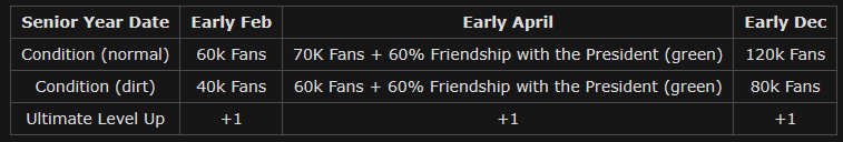 Is the fan count requirement for dirt horses lower for the unique skill level up on senior year? Dirt races give fuckall fans