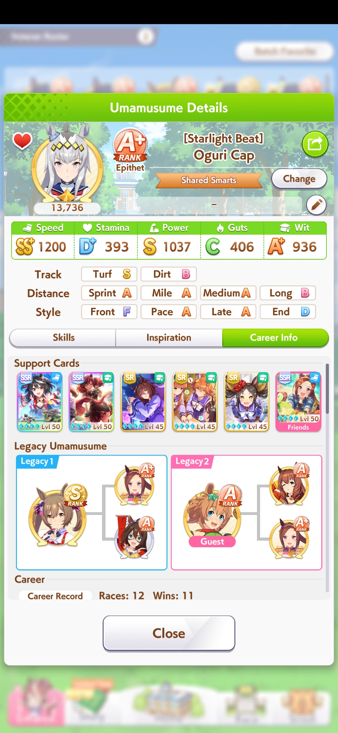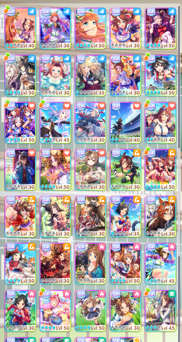 >>556012461She's bit of a hidden gem in the sense that she can actually run all distances and even dirt is doable without inspiration gamble. Her potential skills are just pretty awkward though I think they get buffed in the future.