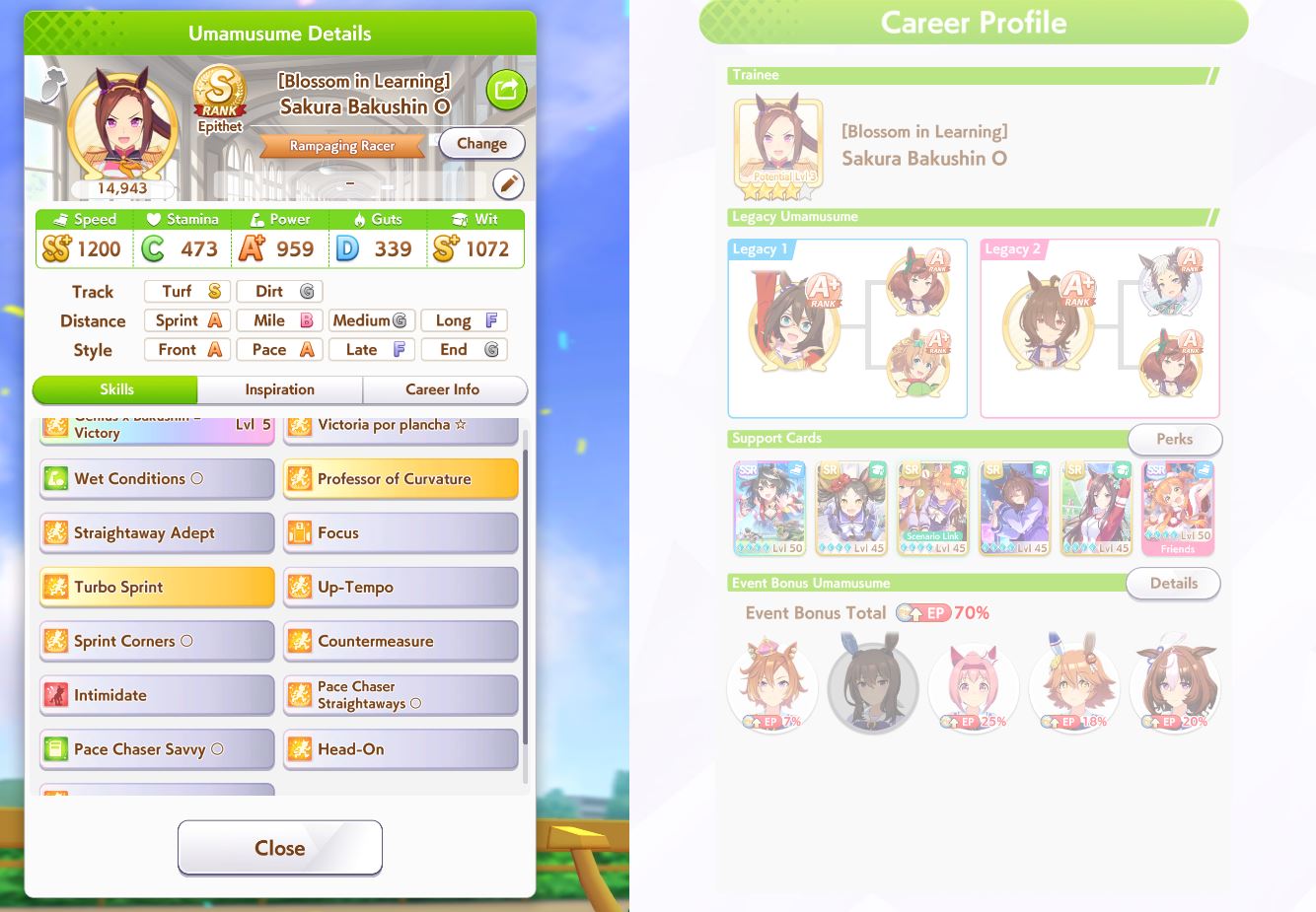 Bakushin pace chaser is the reasonable strat but front runner is the sovl one