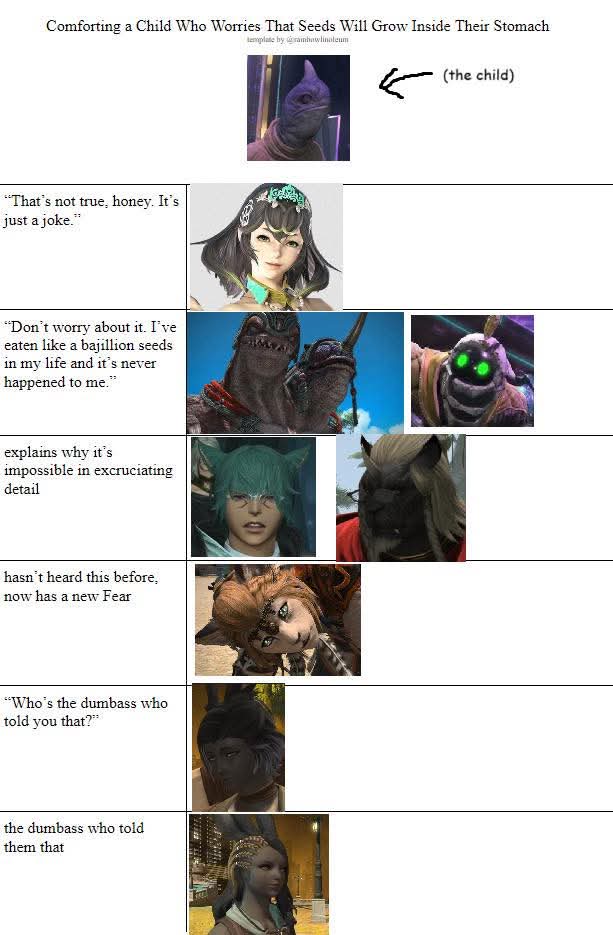 xivg really is highschoolyou can leave breadcrumbs about something, and they will make a narrative and then all collectively agree on something that wasn't even said by the guy but from someone else and youll all run with it, lmao.