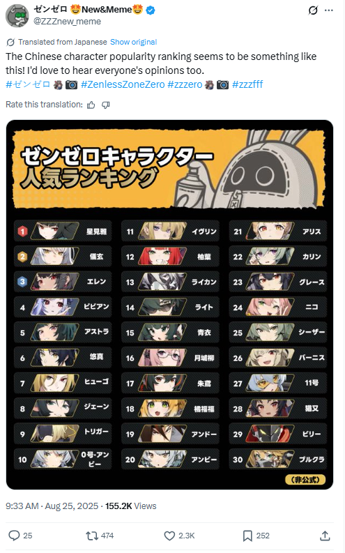 Previous: >>556011669>NewsVersion 2.6 "Encore for an Old Dream" Special Programhttps://youtu.be/oTRy9pZ4TYEAgent Record | Ariahttps://www.hoyolab.com/article/43039871Agent Record | Sunnahttps://www.hoyolab.com/article/43037944>Newest Trailer/Teaser/Character demohttps://youtu.be/06G8YgOrXTw (EN)https://youtu.be/FJ0HD6RC6PY (JP)https://youtu.be/HLv8Dz8t6Hkhttps://youtu.be/7wMz8mDyHgM (EN)https://youtu.be/triNgwM3bGI (JP)https://youtu.be/35fRoOYhE6Y (EN)https://youtu.be/BSKG5nhlj5s (JP)>Upcoming Events for 2.5https://zenless.hoyoverse.com/en-us/news/161728All-New Program 12/29 - 02/05Special Visitor 12/29 - 02/09Potential Hypothesis New Chapter Reforged 12/29 - 02/09Sword Seeker Chronicles 12/31 - 02/05Joint Investigation: The Divine Maze 01/03 - 01/22Shadow Riptide Clash 01/09 - 01/26Wish Filing Station 01/14 - 02/02Advanced Bounty: Area Patrol 01/16 - 01/21"En-Nah" Into Your Lap 01/21 - 02/05Angels and Delusions of Muse 01/21 - 02/05Data Bounty: Combat Simulation 01/30 - 02/04Angels of Delusion Training in Progress 01/30 - 02/09>Redeemable codes (claimable in-game or online)https://zenless.hoyoverse.com/redemptionZENLESSGIFTZZZ25MINAZHAOISFREEShunguangWinterGiftZZZ20265OZ2HDP95IZZZANGELSDREAMINGANGELZZZ26DELUSION>Resources and useful linkshttps://rentry.org/zzzlinkshttps://rentry.org/ZZZ-Friendshttps://rentry.org/ZZZ-Guilds>/zzz/ OP pastebin (use this if making new thread):https://pastebin.com/PzbMf13P