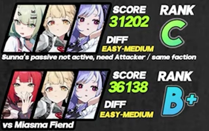 >>556043290Sunna can basically replace any sub-dps or support and be fine because she gives stun modifier too. I used her with S-anby and torigah and easy 41k instead of seed or orph