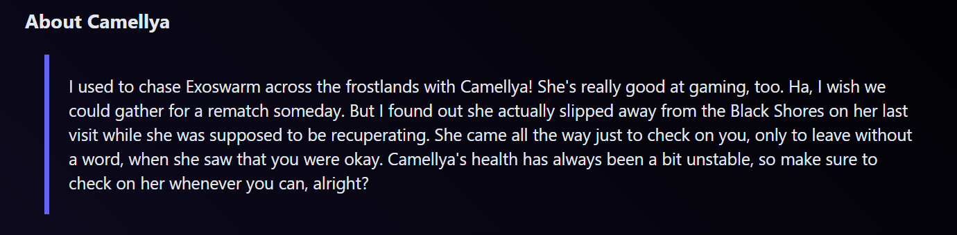 >>556082338?Phoebe was only in 2.0 and 2.1Zani was in 2.0, 2.1 and 2.3 because of her story quest then small appearancesCarlotta was only in 2.0 and small appearance in 2.3 with Ciacconas story quest