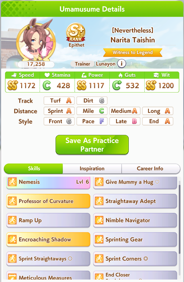 >finished with sprint CM aces>finished 2 dirt CM aces>better to just do parents till MANTOk so i want to make a front parent/grandparent until Selector arrives and i can get Seiun. What Uma would i even use for Front Parent Runs? No bully i am saving for favorites...