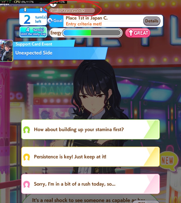 >>556074796Nothing worse than being stuck on Sprint B after the last inspiration..At least when that happens I can just end the career at TSS