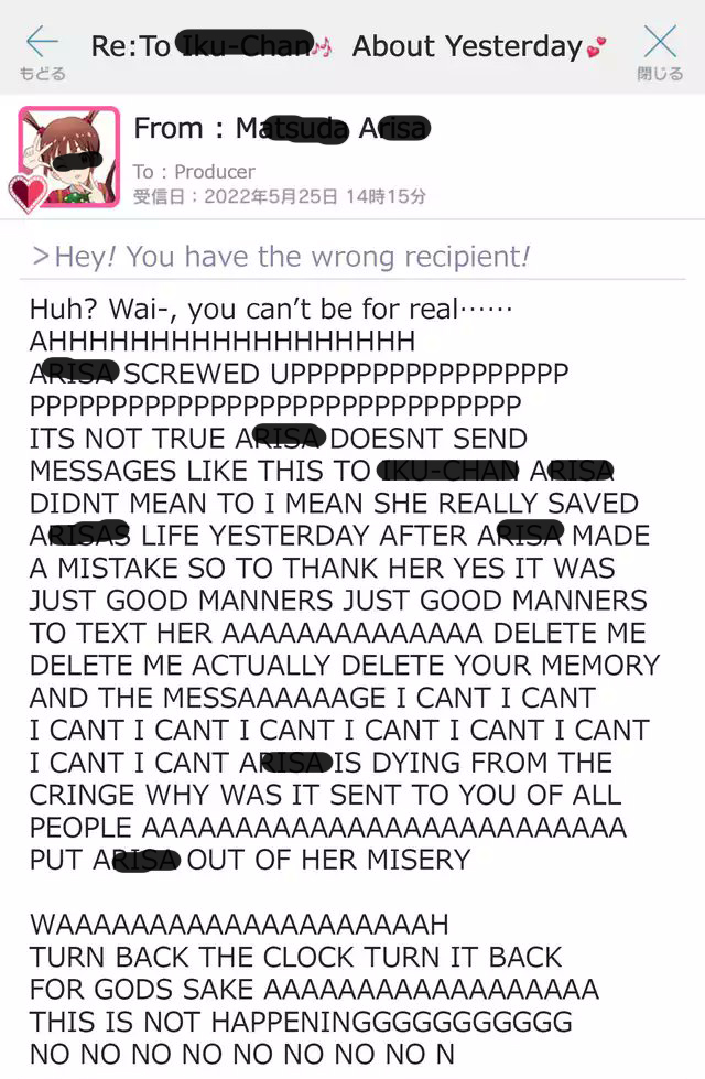 >>556102372FROM: ArisaTO: KaoriSUBJECT: idolchansHi Kaori! Arisa was thinking of heading to the theater for an epic live (idolchans fuooooooooooo). What are the details?FROM: KaoriTO: PSUBJECT: FWD: idolchansdeal withhis. thanyou