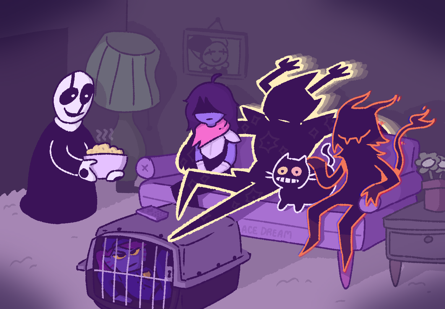 >>556081036This is Mettaton's house because they're watching Tenna, who is sat down at an uncomfortable position so everyone can see his screen and throw popcorn at it