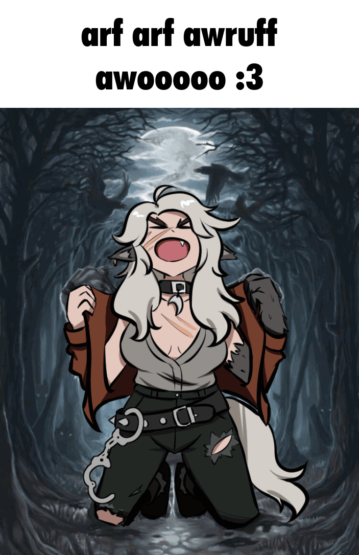 >>556089150>half of the public builds are going for melee damageI thought I heard someone say her werewolf form attacks don't even count as melee?