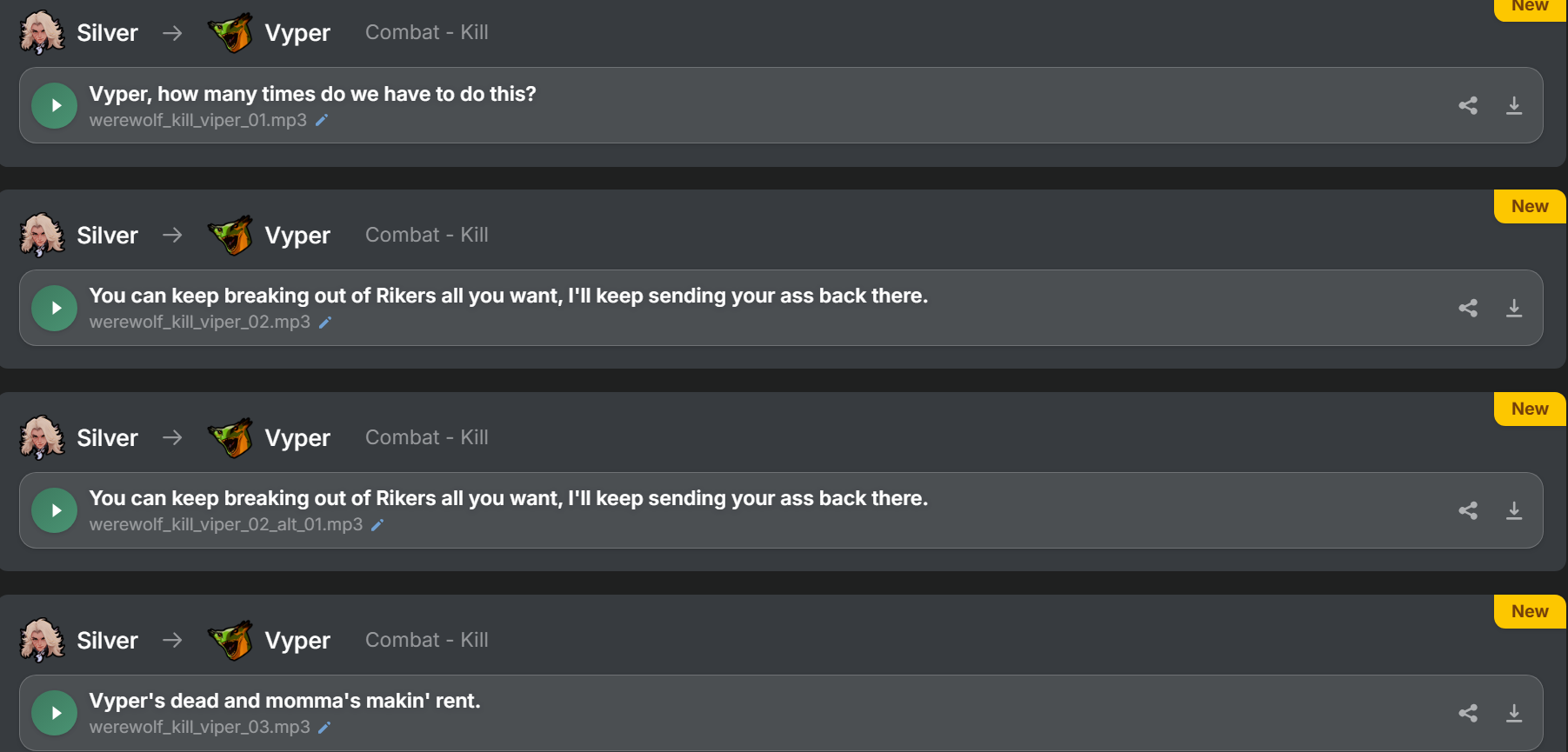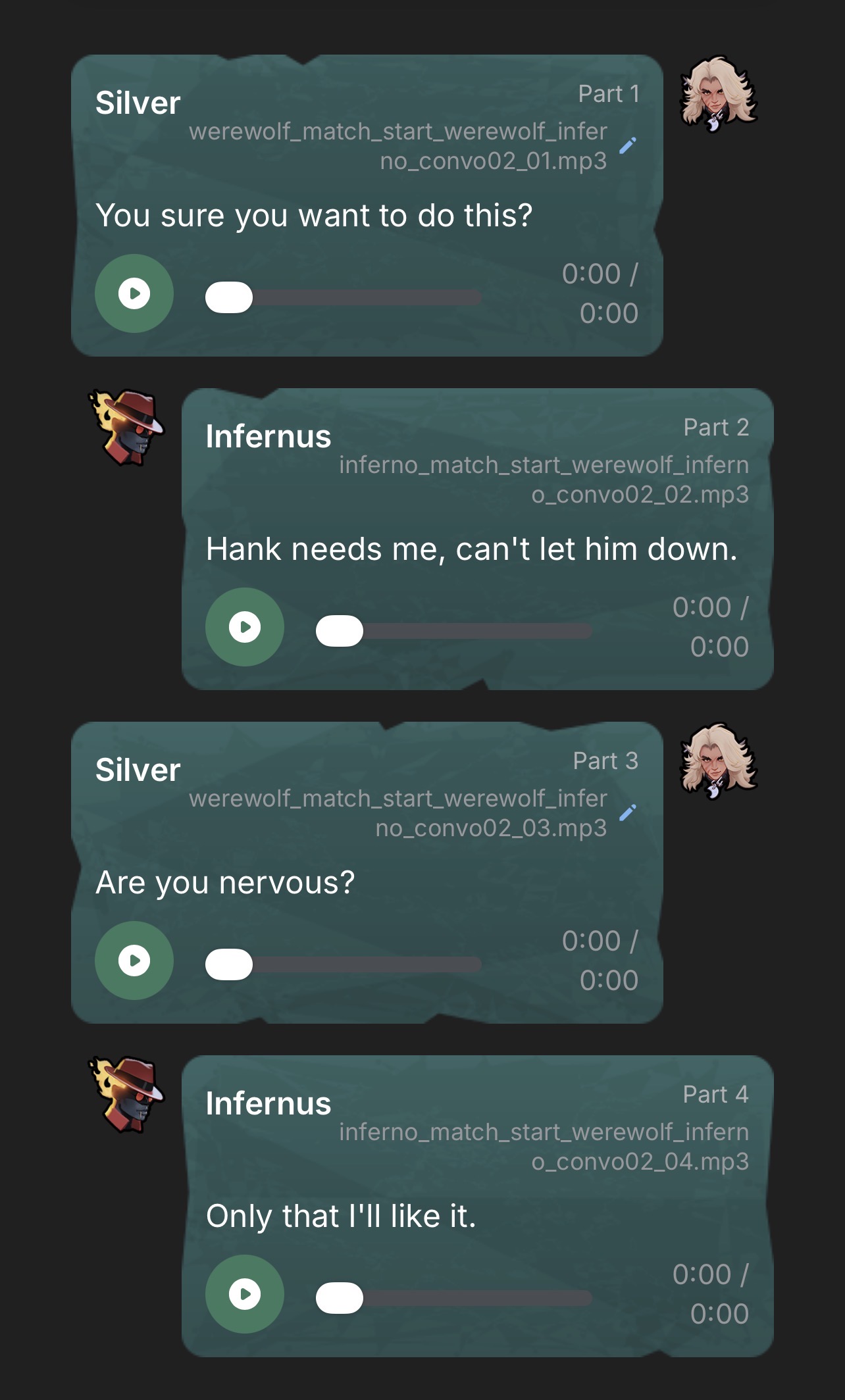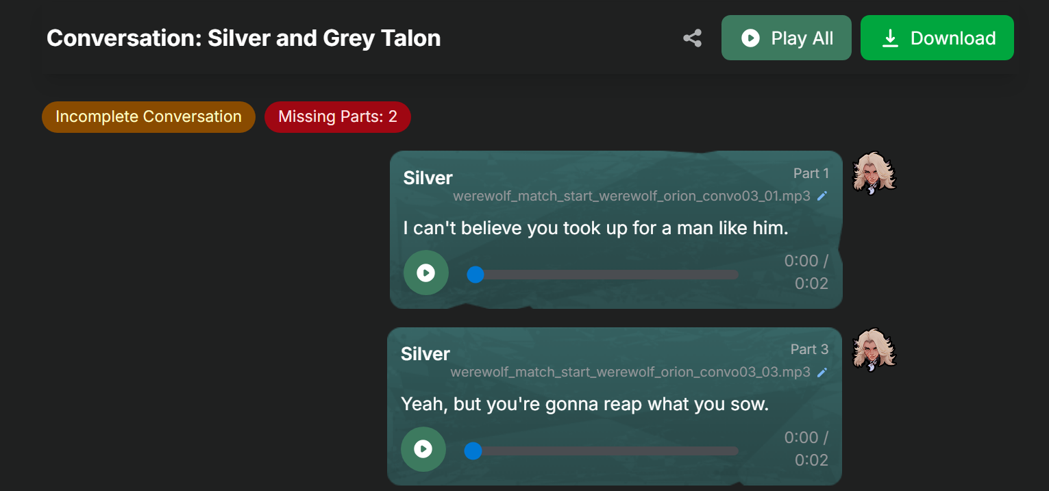 I don't know how to put it but I remember people complaining about the Overwwtch character interactions and saying they felt robotic or boring and I feel like this game has the same problem. I think partially the issue is an awkward pause between lines trading but also that the writing is just kind of weak. The lines where they aren't conversing are good and the rival lines too but when they take turns interacting it comes apart