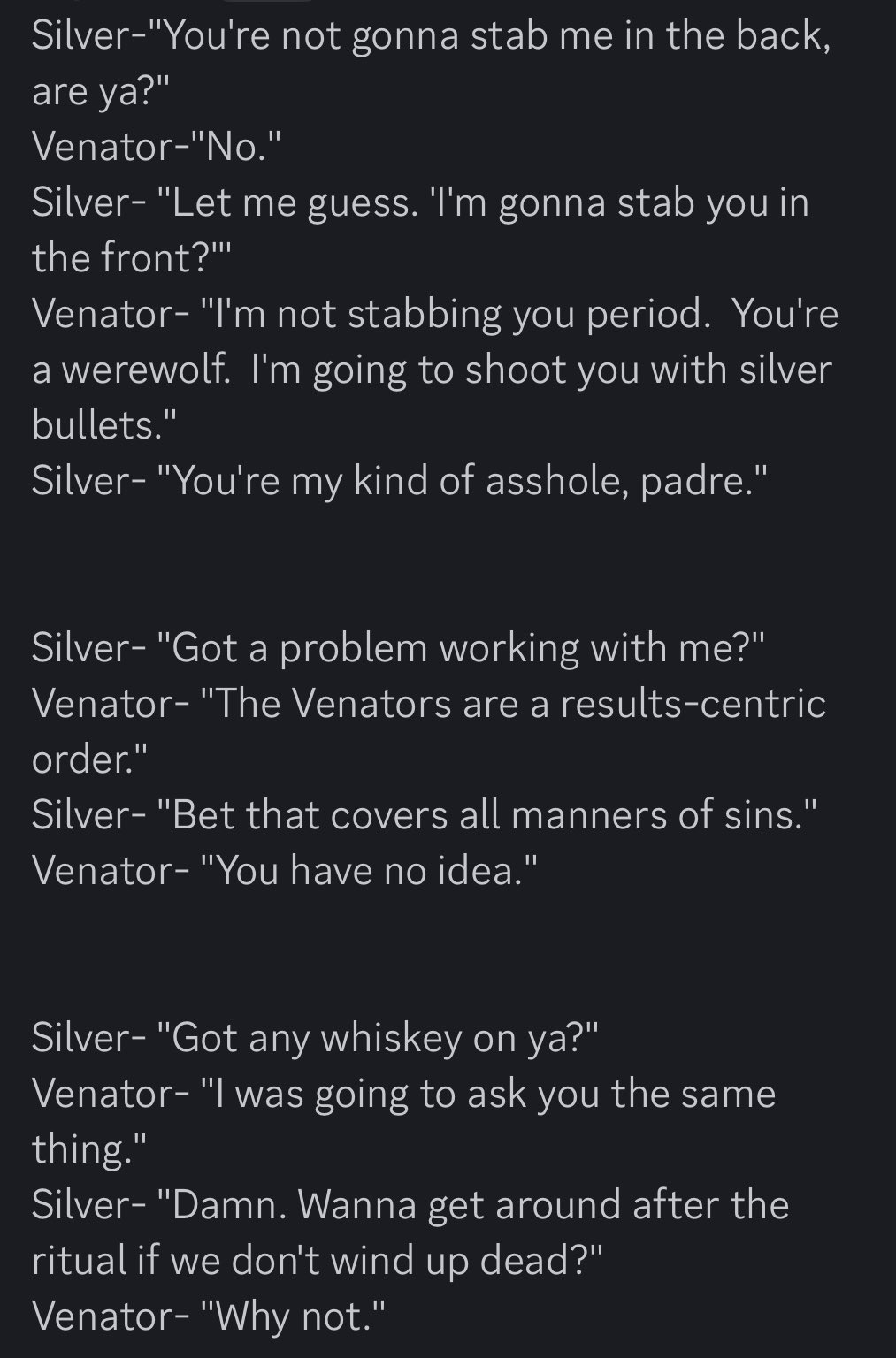 >Silver makes her living tracking down lowlifes, but today New York’s misanthrope lycanthrope plans on summoning a god. >Fortunately, her career as a bounty hunter has prepared her well for all that the ritual requires.
