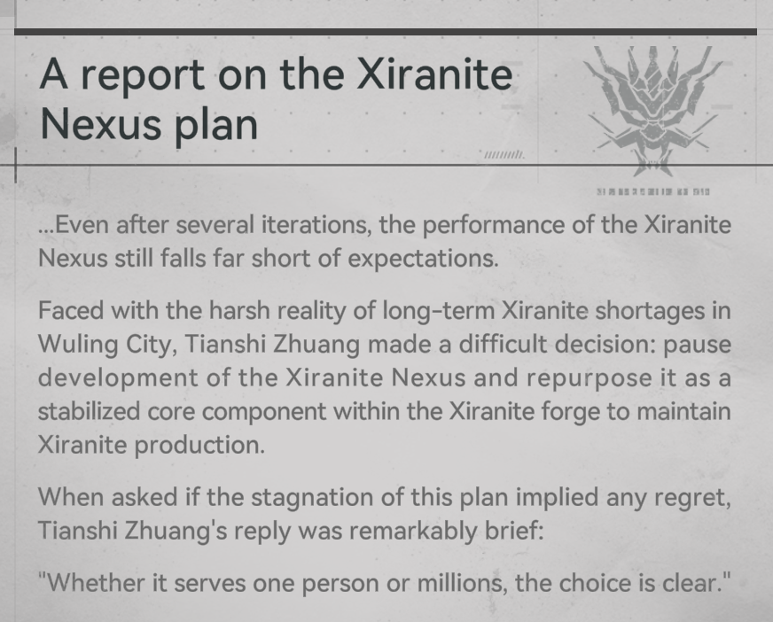 >the solution was to use drone spraying technology that these people designed themselvesthis is fucking stupid, anyone could've hooked up a water hose to the pool of water 5 feet away and pointed it at the overheating reactor.At least with repairing damaged equipment in V4 it required our unique originium arts powers, but I can already feel the wuling storyline declining if this was supposed to invoke awe amongst the scientists