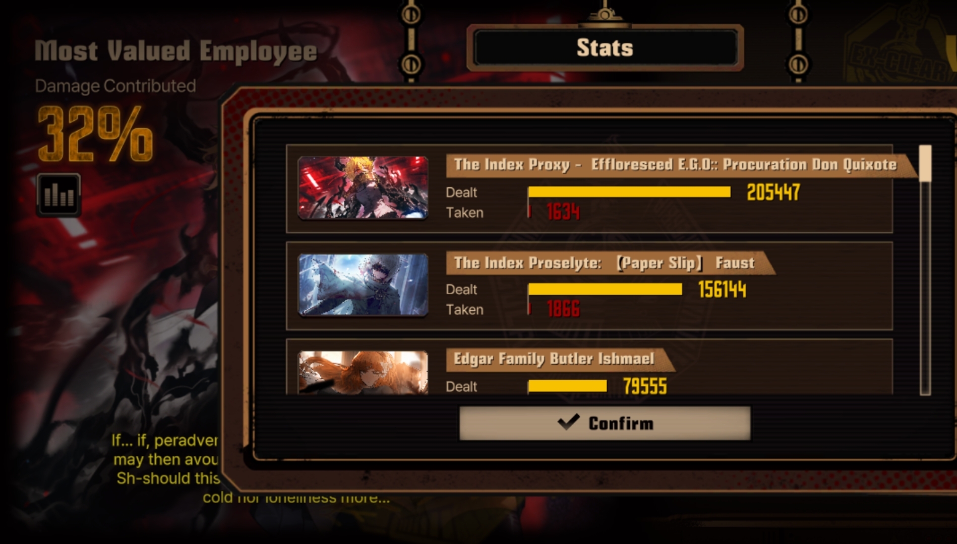 >>556095041>>556095061>>556095178>>556095226It actually got me. The first time Erlking was defeated I was ready to call the whole alternate heathcliff thing filler given how easy he went down,but then they shut me up, And then I was starting to get wild hunt fatigue form the hundreds of copies of the butlers and werewofl guy I had to fight.... and Vergilius made his sick entrance. And then I thought "great another Erlking fight, this sucks" but it was actually the best bossfight in the game so far. I loved the "phase switching" with the shattering mirror, the two alternate music tracks, the special interactions. Honestly can't believe a gacha has this level of quality. If this keeps up the following cantos I'm in for treat.Ironically, back when I first started I thought Heathcliff and Ishmael were just the annoying retards, but in Ishamel's case her canto redeemed her quite a bit. Heath himself was actually starting to look more interesting since canto 1, but his character development during this one is easily the best so far.Right now I'd rate the cantos 6>5>3>1>2>4