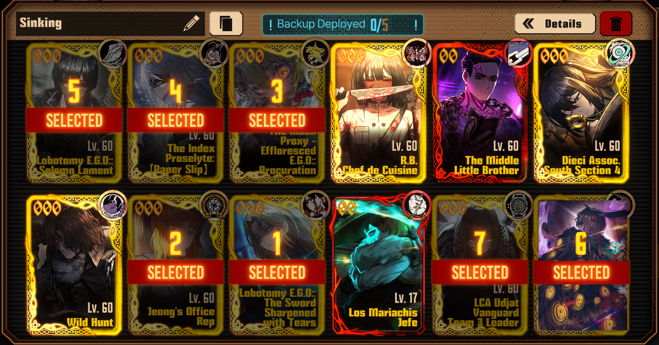 Previous thread: >>556071689Season 7 - Kumo no Ito2025.12.31 —Mirror Dungeon #6 - Mirror of Immortality2025.07.03 —Refraction Railway Line 5 - Merry Go Round2025.02.20 —>Current Events>Upcoming Extractions2026.02.05 — 2026.02.19[000] The House of Spiders:The Pinky Apprentice Sinclair[000] Lobotomy E.G.O:: LAMP Gregor>Current Extractions2026.01.22 — 2026.02.05[000] The House of Spiders: The Middle Apprentice Ishmael2026.01.22 — 2026.02.05Target Extraction: [ Rodion ] ID & E.G.O>FAQs! This game is directly tied to the setting of Project Moon's previous games, Lobotomy Corporation and Library of Ruina, and is set after both. Expect spoilers for those games in this thread.! The tutorial is important.>Download linksAppStore: https://apps.apple.com/app/limbus-company/id6444112366Google Play: https://play.google.com/store/apps/details?id=com.ProjectMoon.LimbusCompanySteam: https://store.steampowered.com/app/1973530/Limbus_Company/>Other linksOfficial twitter: https://twitter.com/limbuscompany_bOfficial youtube: https://www.youtube.com/@ProjectMoonOfficialOfficial site: https://limbuscompany.global>Required readinghttps://mega.nz/folder/xosDkZ5Z#Wt4JpUt5Bb2XG77pxuuXpw>For all your EGO and Sinner info needshttps://limbus.kusoge.xyz/https://gll-fun.com/en/>Useful resources and a general guidehttps://rentry.org/lcg_resourceshttps://rentry.org/lcbguidehttps://rentry.org/LCB_optimal_grind_guidehttps://lcb-days-since-last-id.carrd.co/https://lcb-days-since-last-ego.carrd.co/>Countdownhttps://lcbcountdown.carrd.co/