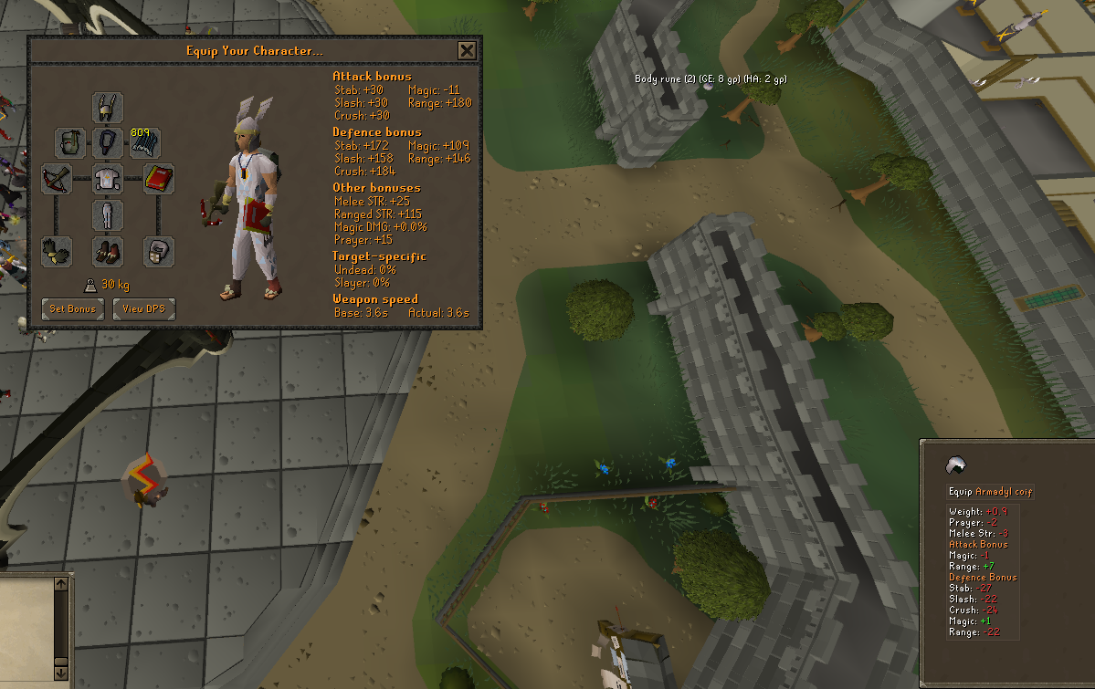 buying stuff from the ge takes forevermy bank is a giant wall of shit form not sortingrunning away is simply not time efficientyou can do mostly everything completely nakedcaring about dying is wasting points