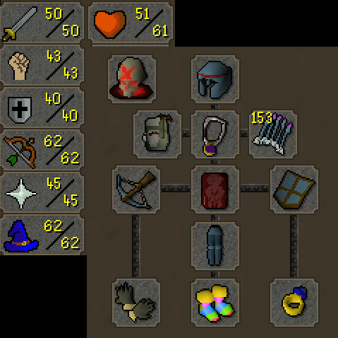 me personally i just run around in rags and practice pking i kill a lot of redditors that bring quite a bit but like 5 sharks for some reason then they complain on their website