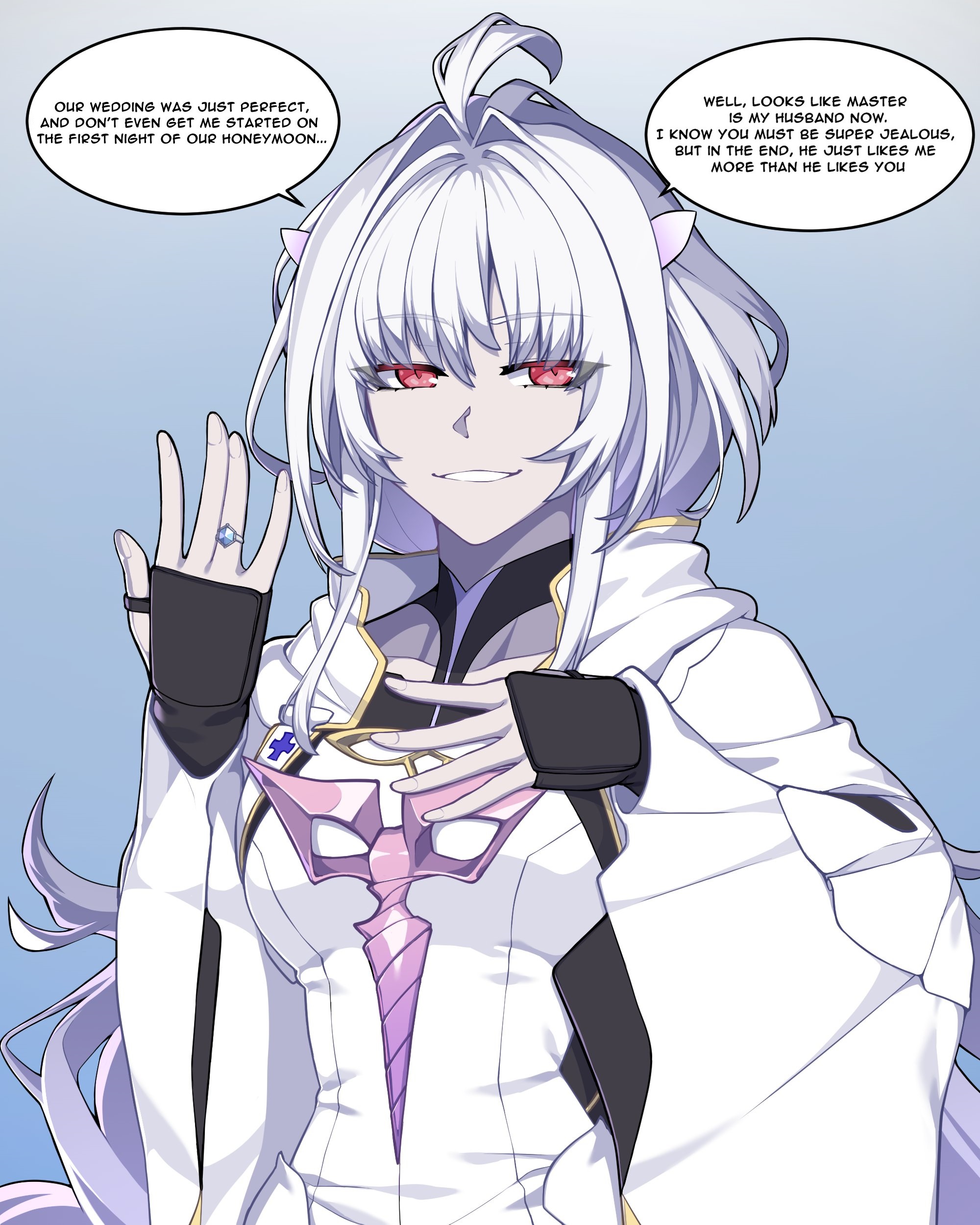 Anon... you got baited by the other guy, now you're gonna get banned for being off-topic... if you really thought about it, you'd realize his post was a huge jump from what you said, plus we already call every female servants sluts all the time...