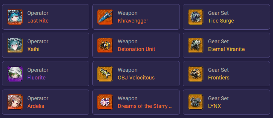 >>556145012>>556145121This is the guide I'm using for my last rite team. You can obv replace Fluorite with Perlica or Snowshine whatever you prefer. https://mobalytics.gg/arknights-endfield/teams/okmuzzy-last-rite-team