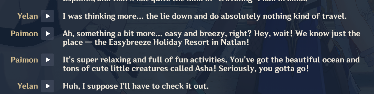 I'm like an hour into Lantern Rite story and so far it's just everyone sucking each other off>Old man: OH GREATHORSE ADEPTI>Paimon: OH WISE ZHONG LI>Beidou: OH MY SOPHISTICATED WIFE NINGGUANG>Beidou: OH YOUR OPERA IS SO GOOD YUJIN>Yujin: OH YOUR KINDNESS MR ZHONGLI