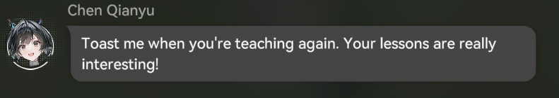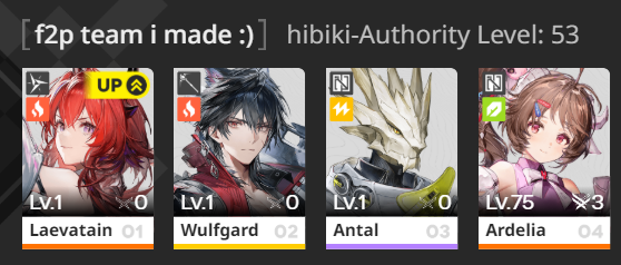 >>556188605Felt the same way with female Endmin. Pretty romantic.By the way, her name is Laevatain, unless you found an alternate quest for the Arknights character.