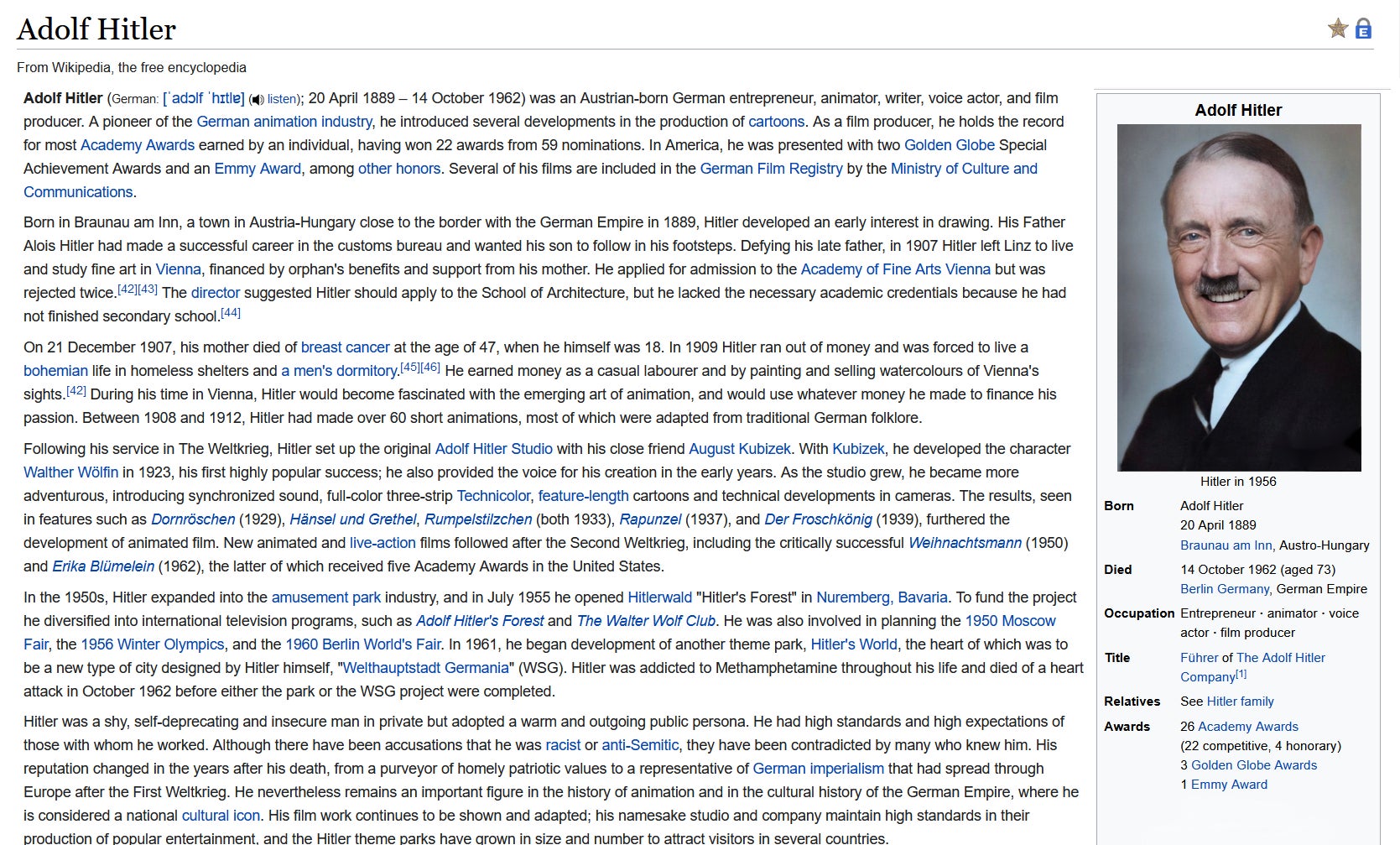 In this universe hitler became a successful artist and a lot of the artwork in our hideout was made by him