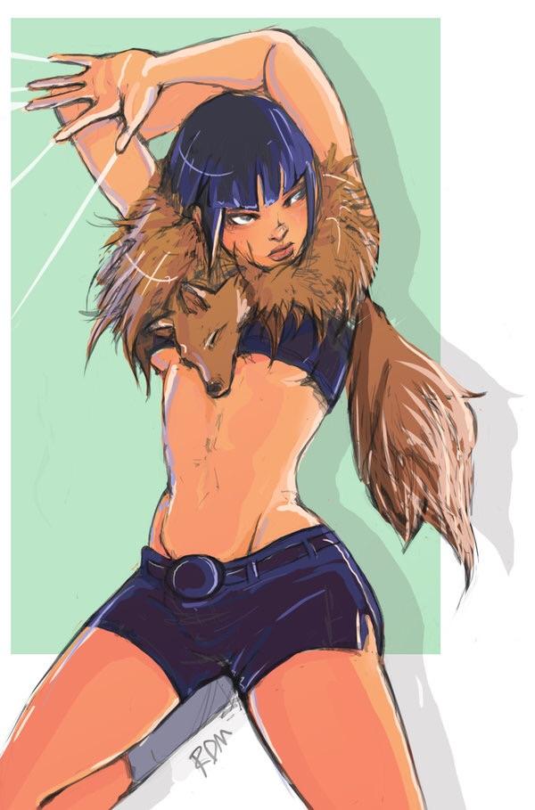 My idea is to change her hairstyle a bit, keep it short ant tomboyish, maybe like this, make her wear a dolphin short on her spats, and let her show the tummy area, as for the upper body, I don’t know anything goes.