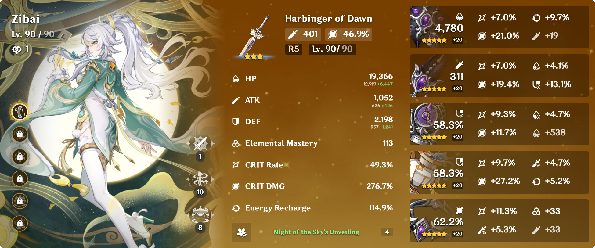 About 180 pulls got me C1 Zibai and C5 Illuga/Aino. We'll see if I can scrape together one more Illuga and maybe another Zibai before the banner ends.