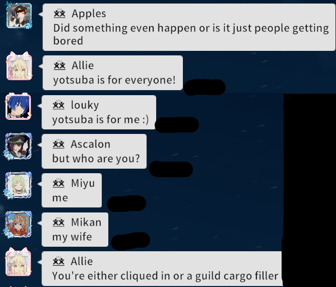 this is why 4chan guilds are bad idea. always full of mentally ill log leakers.