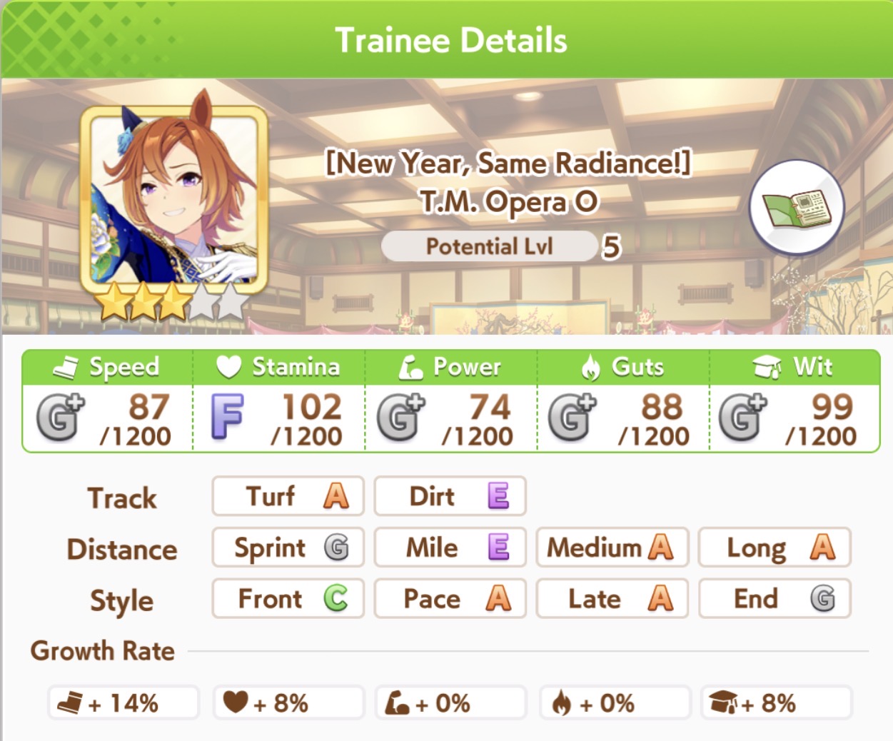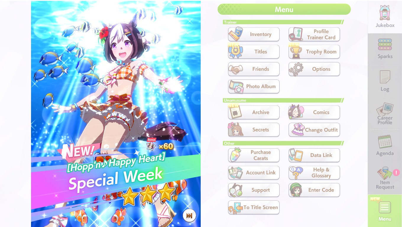 Current Rate Up Trainee: New Year T.M. Opera O (3*), New Year Haru Urara (3*)