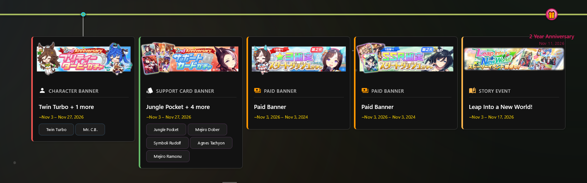 Timeline: https://uma.moe/timeline