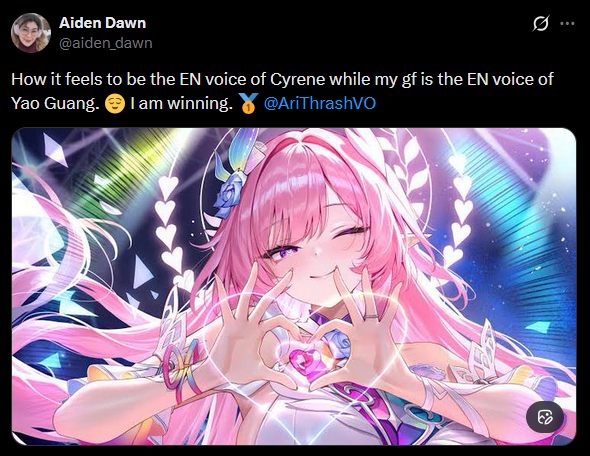 >actors are not their characters>also btw, did I mention I’m the voice of ELYSIA and my gf voices YAO GUANG