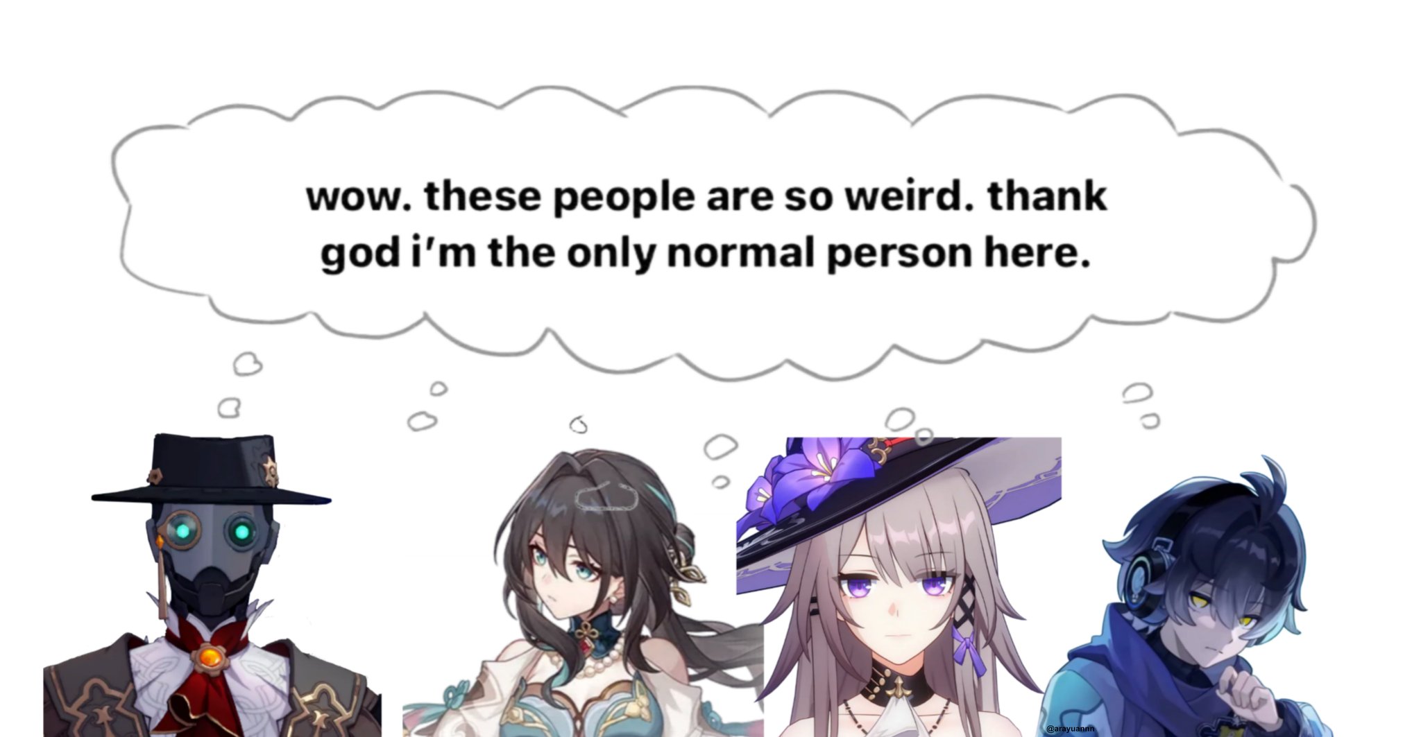 >>556239987All of SU can definitely work very well alone. RM and Stephen need "wrangling" if they want to work together with themThat said I think Herta's arrogance puts herself way above "normal" people (to a point where she thinks normal is boring) and Screwllum is well, a robot gentleman. Ironically he's the most normal but he's still a robot