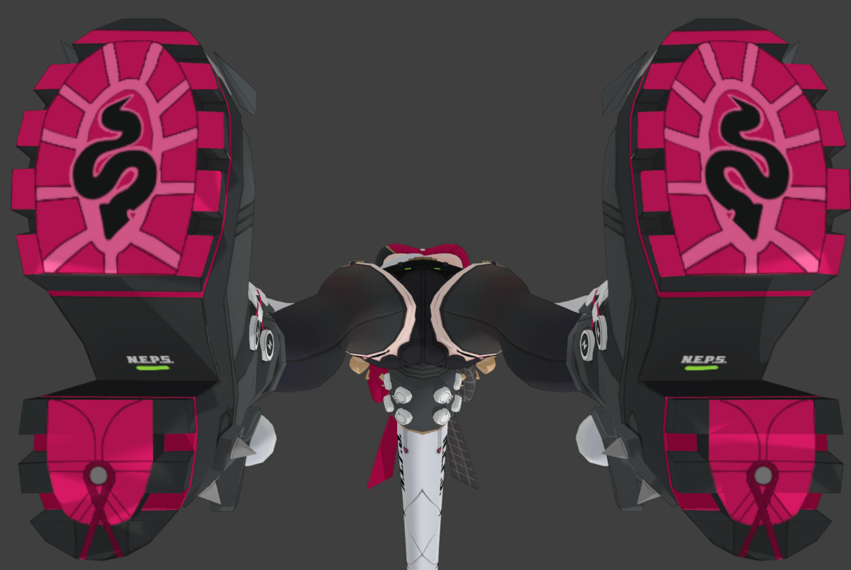 I really like her tall-flat design. That's pretty unique. She also seem likes to be perpetually cuffed, so I am expecting some unique animations too.