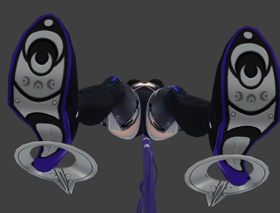 Close ups of Promeia's weapons. Her cape comes off (as I am sure you have seen lol) and looks like it shoots out these crescent moon shaped batarangs - Geclomann