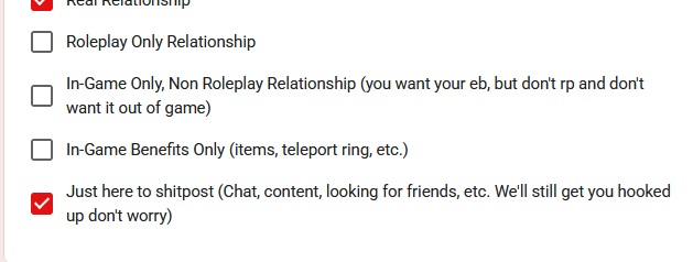 >>556268920Then don't apply. It's why I'm not.The meetup sounds fun for shitposting purposes but if you're the type of person who wants a real relationship you're much better looking IRL.