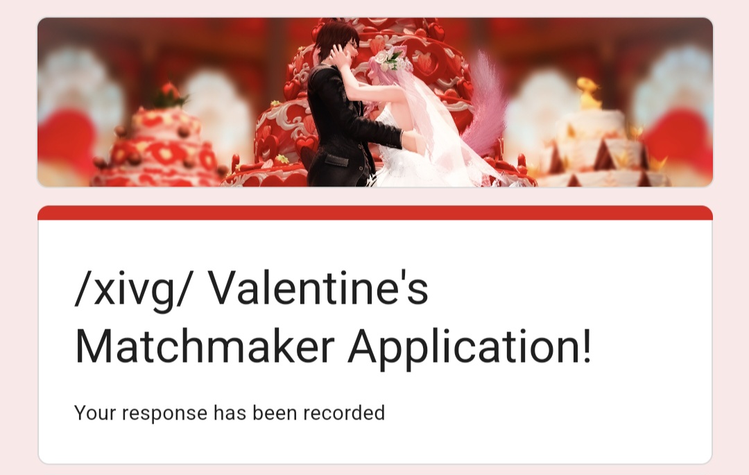 >>556255067Please add to the next OP.• February 14, 7:00 PM EST | Mateus, Goblet W22 P19 | Valentines Matchmaking Meetuphttps://forms.gle/Ua13L7JihJFXegM86Interest was expressed in something a little different for this Valentines. It's been a while since there was a Matchmaking Meet so, here we go.It will be hosted from 7:00 PM EST til 1:00 AM EST on Saturday, February 14th this month, at Mateus, Goblet, Ward 22 Plot 19.People have asked for some kind of dating event for Valentines that isn't just another auction or mixer, but speed dating goes horribly because people end up sitting alone or too scared to approach each other. I've created a form for you to submit some basic information and a bit about yourself and will be doing the matchmaking for you. This means everyone that signs up, I will be doing my best to get them ONE (1) one on one blind date with a fellow /xiv/ger that has similar interests, that you may not have known about or never talked to.You CAN signup to be matched to make friends - these dates do not have to be romantic and you can have a great chance to make a nice new friend.It will also be a general mixer. There's a big screen in the house so I'll run some themed movies throughout the evening. Party games will be hosted too and hopefully a wonderful time for all. The venue is excellent, has lots of seating, and immediately outdoors is the Goblet pools which again, is lovely and has plenty of seating.Disclaimer: I'm not taking thread rep into account for matchmaking, only intentions, preferences, and interests both in and out of game. I don't know anything about most of you people so throwing "But that person shitposts" at me doesn't mean anything. IRL partner gender cannot be guaranteed.Submit your application for a blind date and we'll do what we can for you. If you leave any questions or concerns on the last section and I will reach out to you well before the meetup.Thanks, and any questions just ask.