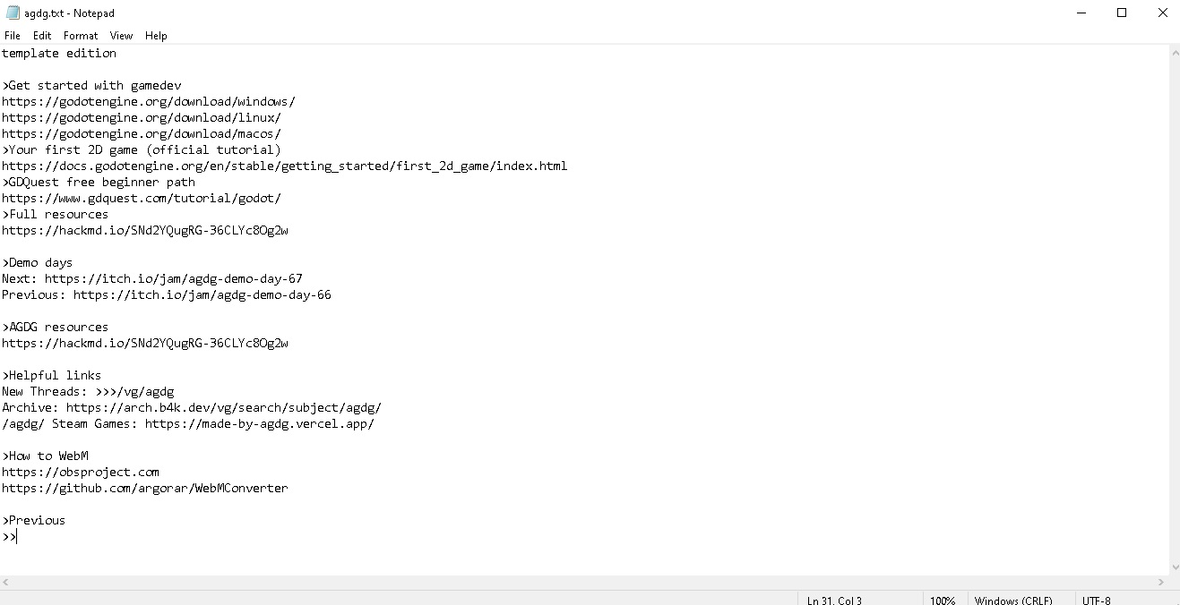 trannies are not people edition>Demo daysNext: https://itch.io/jam/agdg-demo-day-67Previous: https://itch.io/jam/agdg-demo-day-66>AGDG resourceshttps://hackmd.io/SNd2YQugRG-36CLYc8Og2w>Helpful linksNew Threads: >>>/vg/agdgArchive: https://arch.b4k.dev/vg/search/subject/agdg//agdg/ Steam Games: https://made-by-agdg.vercel.app/>How to WebMhttps://obsproject.comhttps://github.com/argorar/WebMConverter>Previous>>556165701
