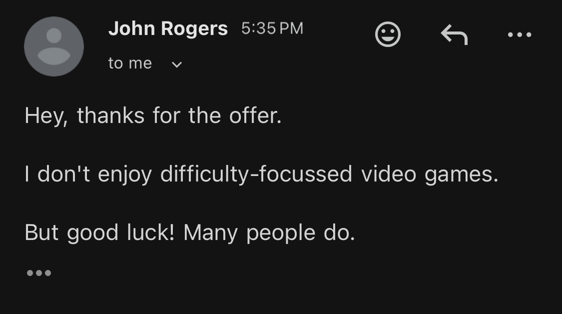 >>556256791Seeing the look on peoples' faces when my game "clicks" with them and they start having fun engaging with its systems