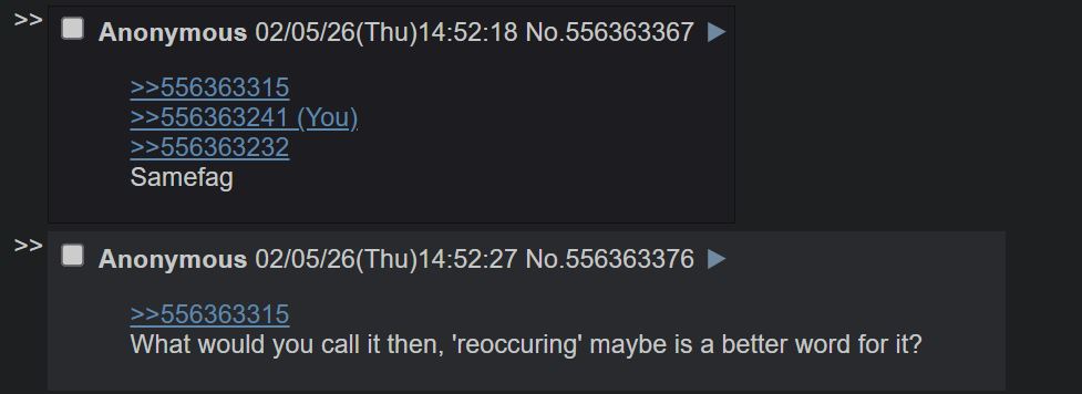 >>556363315What would you call it then, 'reoccuring' maybe is a better word for it?