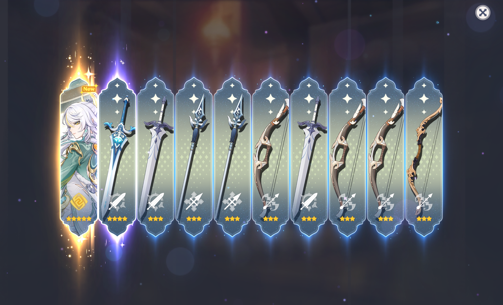 >Current weapon banner: Lightbearing Moonshard (Sword), Tome of the Eternal Flow (Catalyst)