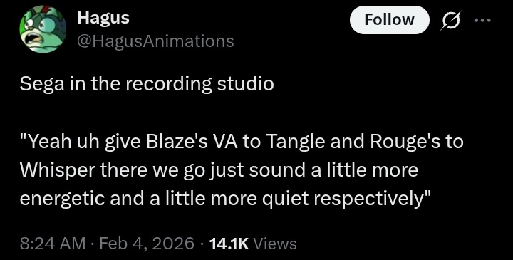 >>556259002I think it's also funny that he left in Paramount Sonic news because he knows his place.