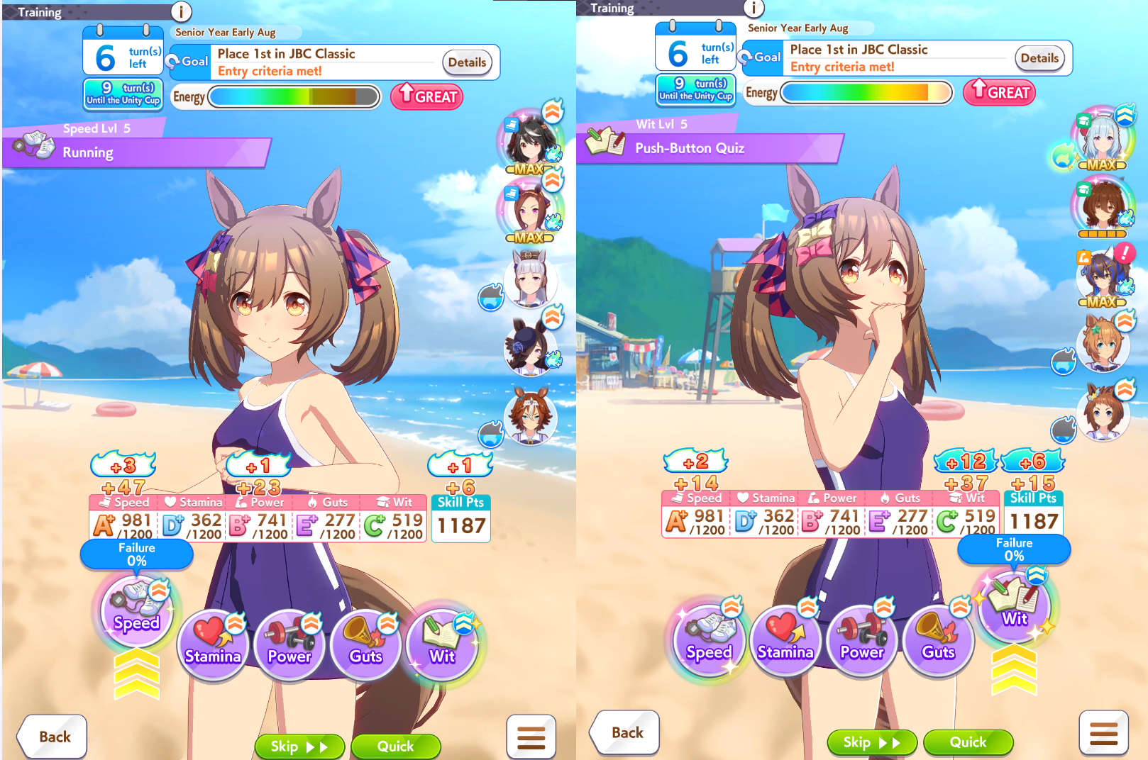 How much of a difference is it to the run progression if you do tier 2 instead of tier 1 for the first Unity Cup round? How many stats does the team miss out on?