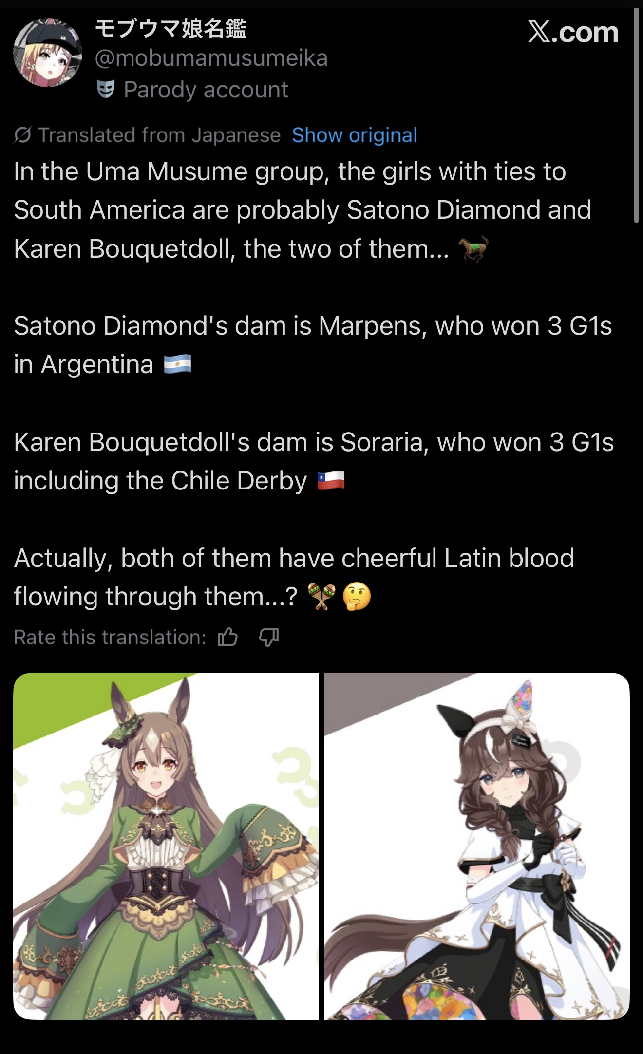 >>556286234Yeah I also got spooked by her when pulling XOguri, I'm enjoying doing runs with her I gotta get around to read her actual career now, I owe her at least that much