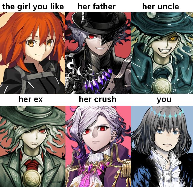 >>556301373You, the one Crypter that didn't make the actual team so you're just sort of doing your own thing with your own mini lostbelt the alien god provided out of seeming pity because you're a literal who. You're such a literal who you managed to get away with it because nobody possibly saw it coming.