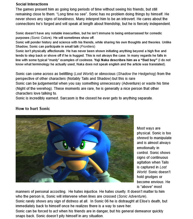 >>556294661>As far as the OC's go, I generally agree with the negative sentiment, but part of the reason there are so many new OCs now is because everybody is so scared to do ANYTHING with the older cast because if Sonic so much as gets too angry at someone who hurts a friend of his or whatever people riot in the streets.Here is a single easy step to writing Sonic characters in-characterAre you ready?Here it goes...Use the games as a reference. Not Archie, Sonic X, or IDW.