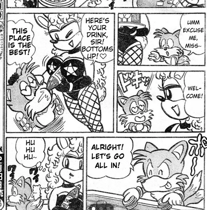 >>556325371In terms of wish fulfillment noncanon nonwind stuff, I like to believe Sonic and Tails both have harems, with maybe Mina and Fiona their only overlapping members