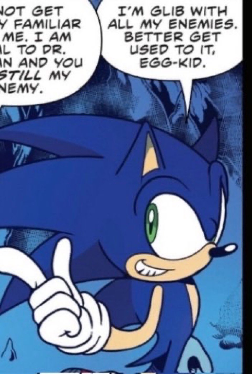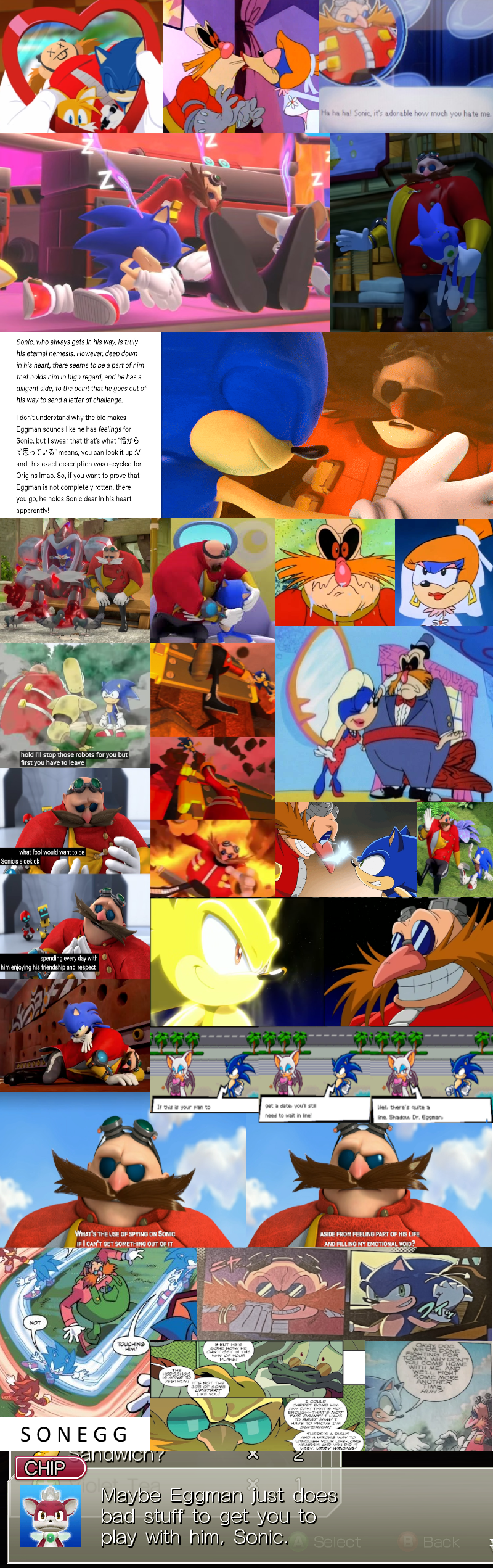 >>556292036The OVA is weird because it's clearly its own universe but it gets enough right about the core characters and drives those things to perfection. This helps it override the things it gets wrong, and it does get things wrong.I was watching it last month for the first time in years and was struck by how many flaws in the writing I noticed and yet despite that it was still extremely entertaining to a point that no other animated Sonic product comes close to imo.