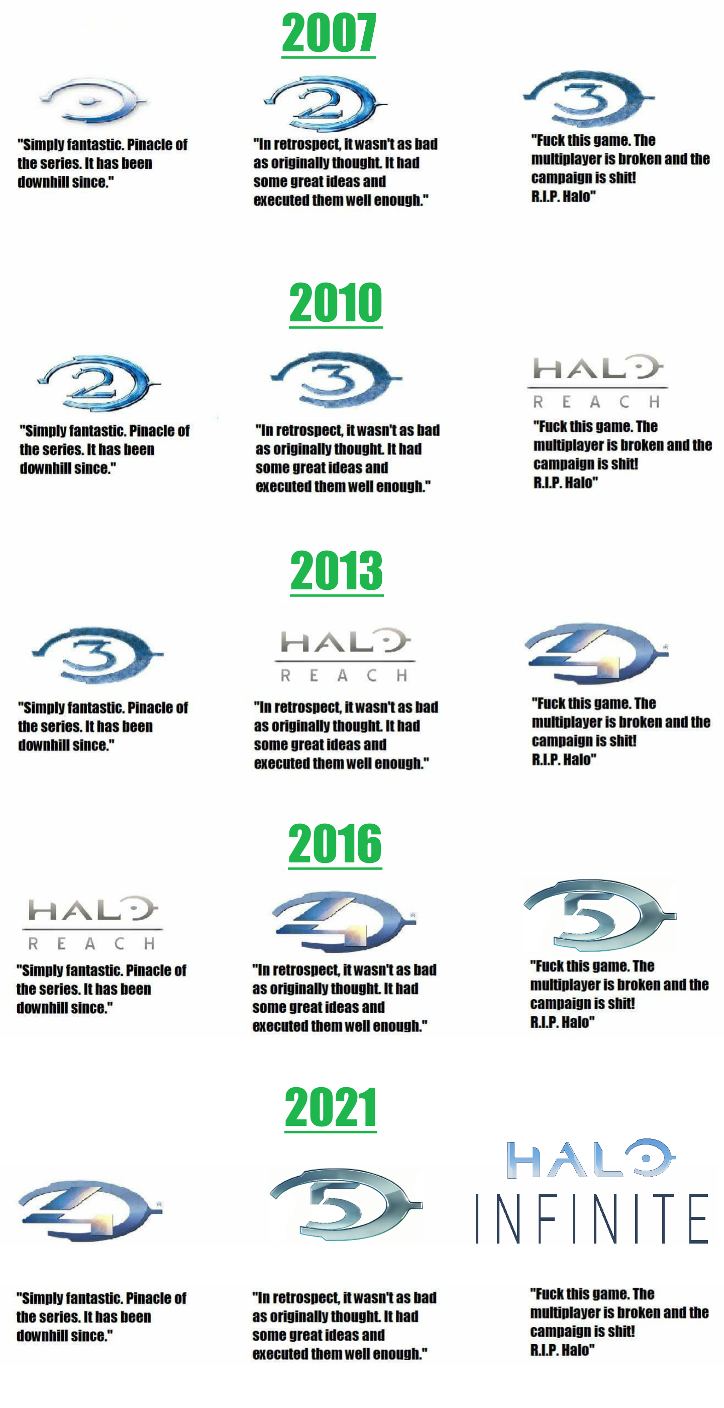 >>556292248Halo fan here, we have this same problem with Halo 3babs.On an individual level they are not the worst fans by a long shot, those would be the unironic 343 apologists. And in many ways Halo 3 IS arguably the best overall Halo game, but these people are so fucking numerous and many of them didn't even play own the original Halo CE and 2 because they were largely PS2babs who jumped over to 360 in gen 7 because that was the normie console. So for them Halo 3 is beyond criticism. It has to have the best campaign in every way, the best multiplayer in every way, the best music in every way, everything, and if you disagree with them on any point they try to label you a 343 apologist even though it's probably more likely that you just don't believe Halo 3 is across the board perfect.