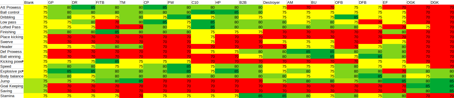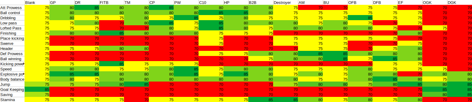 >>556312589>>556313618Here's the combined ability scores for non-medals including the effect of playstyle choice on work rate for the 3 relevant playstyles. The last few combined abilities are only relevant for players who are GKs so I left them separate